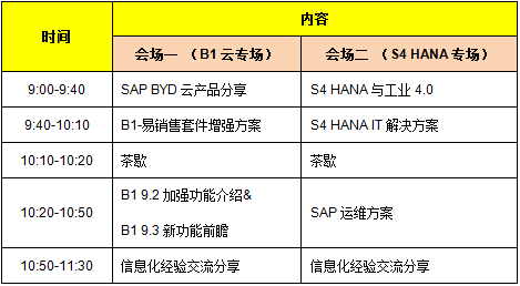 為了更有效針對性的溝通交流,活動將采取分會場的形式舉行,其中包括B1云專場、S4 HANA專場?;顒訄竺刂箷r間2017年4月7日。