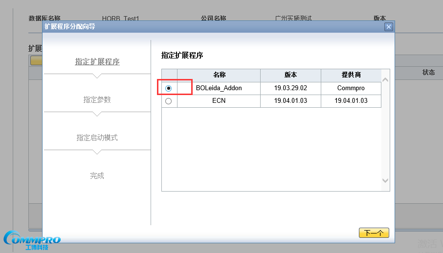第五步:在【指定擴展程序】處,選擇指定分配的Addon程序。