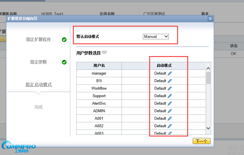 第六步:設(shè)定指定參數(shù),一般將默認啟動模式設(shè)置為自動模式【Automatic】,然后點擊【下一個】。