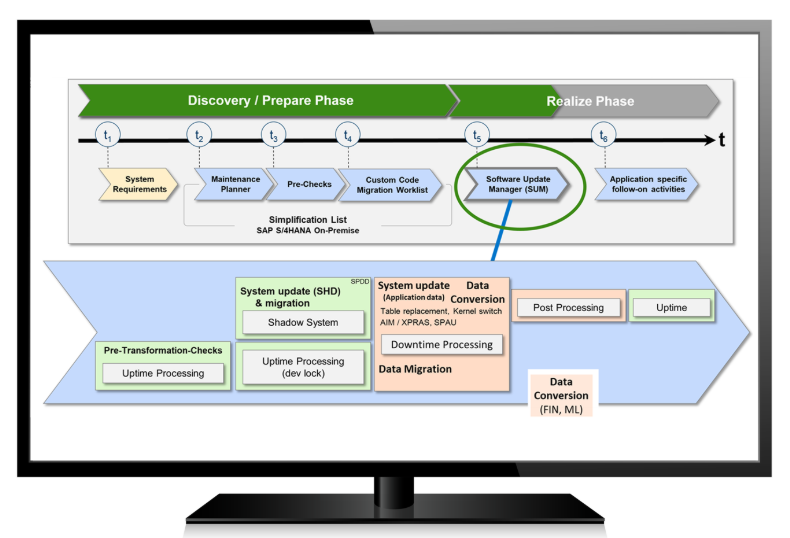 從技術(shù)上講,SAP有一個強大的過渡工具(名為SUM )可以將系統(tǒng)轉(zhuǎn)換為S / 4HANA,將舊的(Oracle / DB2 / MSSQL)數(shù)據(jù)庫遷移到SAP HANA數(shù)據(jù)庫,并將舊的ECC應(yīng)用程序升級到較新的S / 4HANA代碼庫。