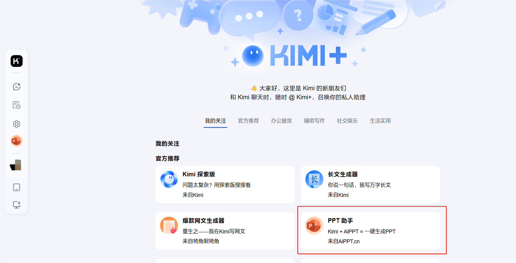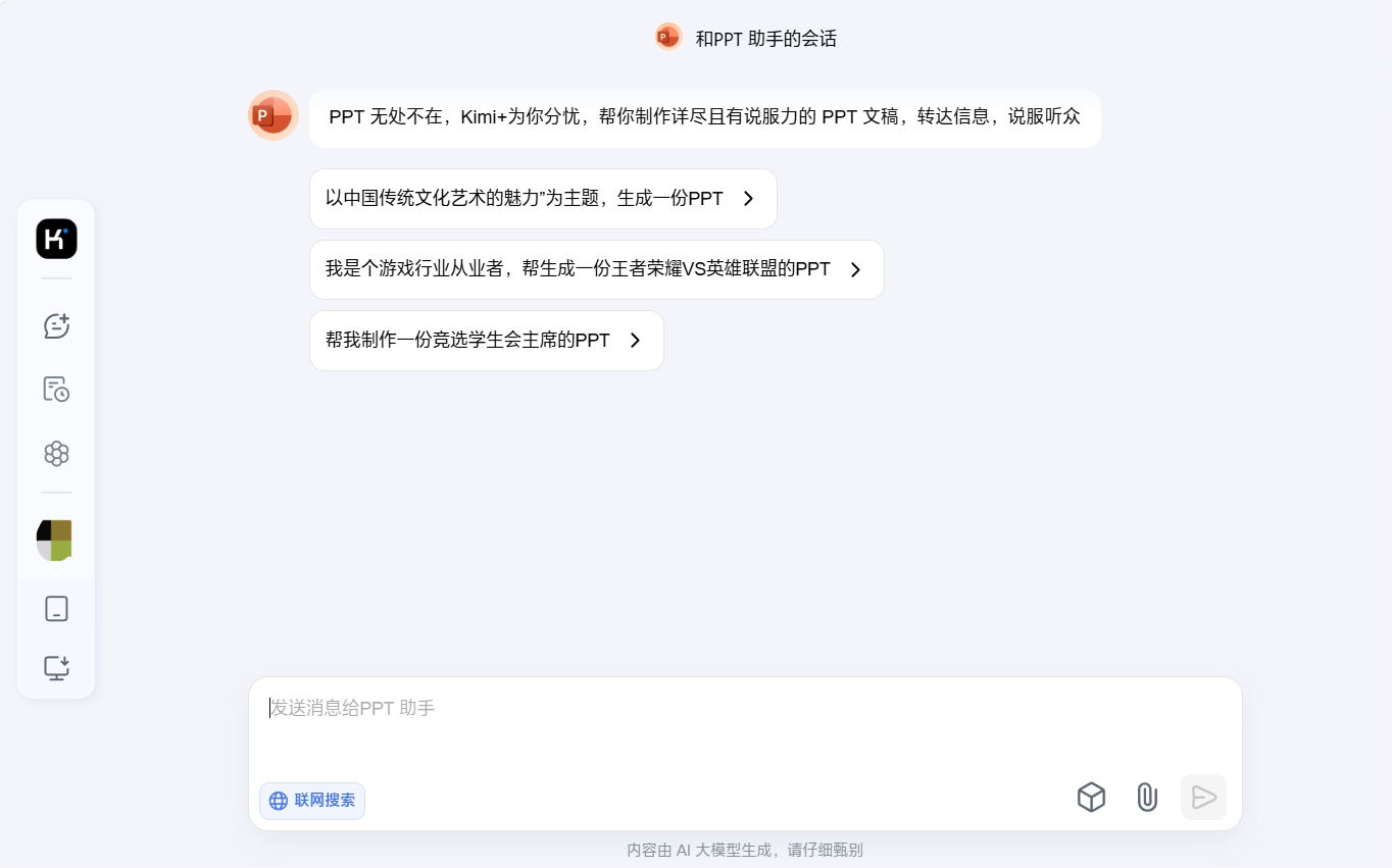步驟一:選擇kimi的PPT功能
