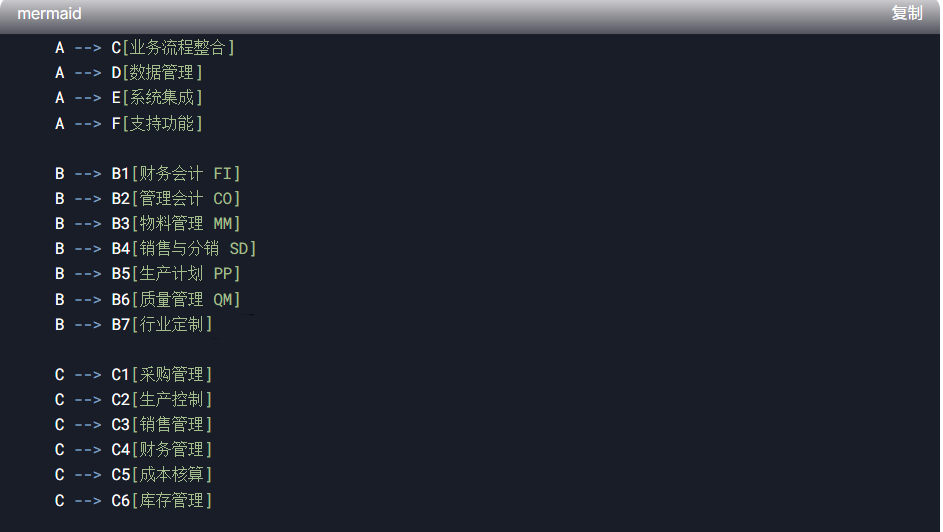 DeepSeek可基于文字內(nèi)容生成的信息化框架圖代碼(使用Mermaid語(yǔ)法),可直接導(dǎo)入支持Mermaid的PPT工具(如PPT插件或在線轉(zhuǎn)換工具)生成框架示意圖。