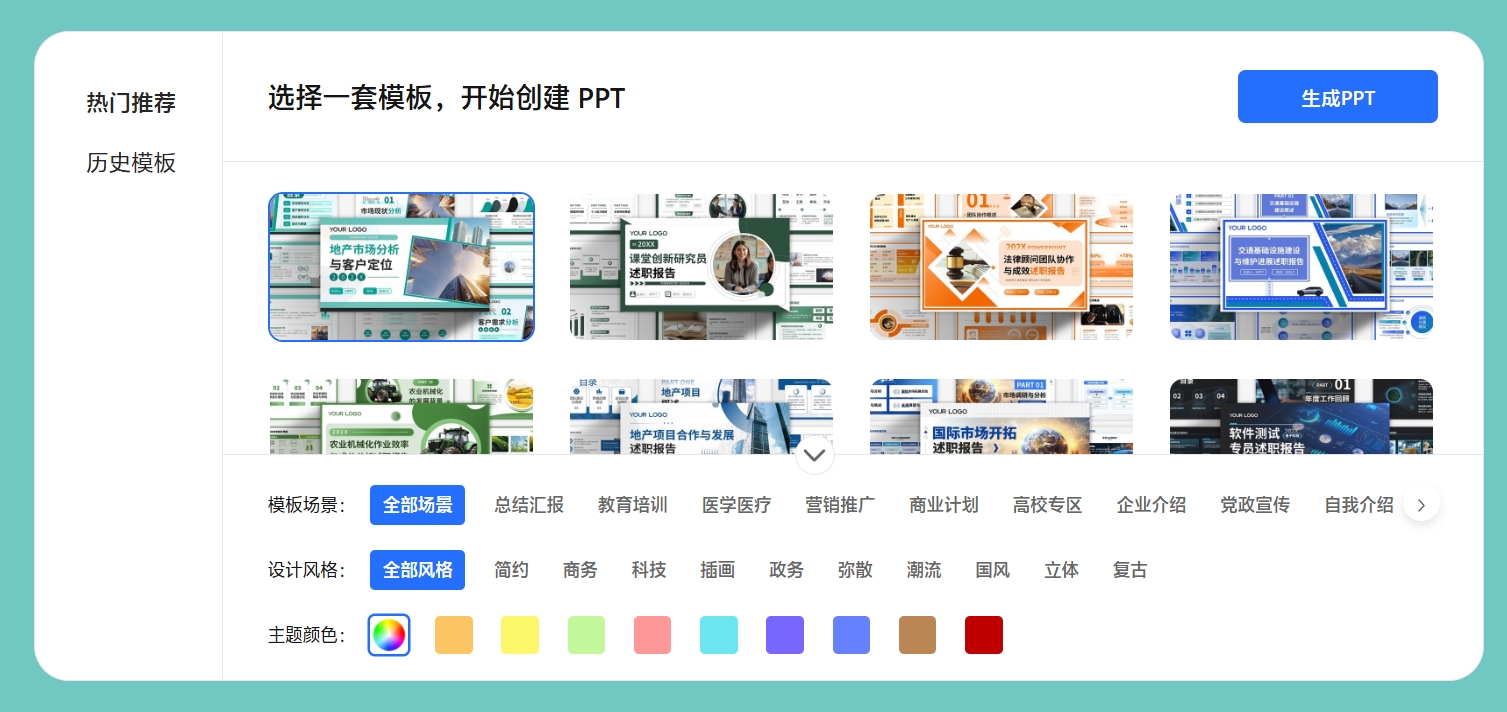 步驟三:選擇PPT模板,完成生成后下載