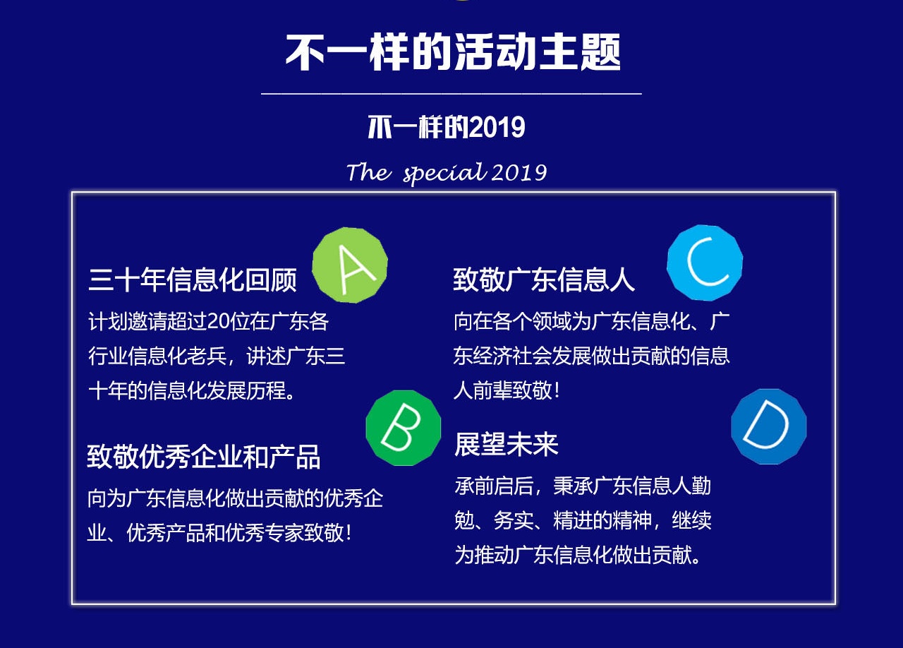 700多位業(yè)界精英,圍繞“廣東信息三十年”主題,分成“三十年信息化回顧”、“致敬廣東信息人”、“致敬優(yōu)秀企業(yè)和產(chǎn)品”、“展望未來”四個(gè)部分。