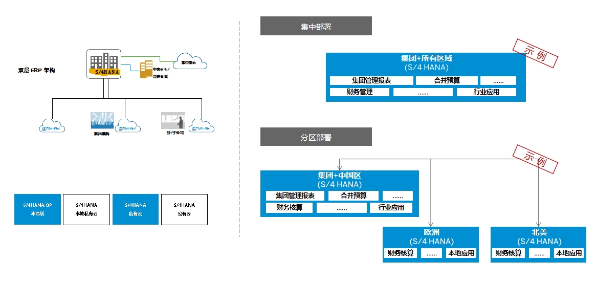 架構(gòu)模式靈活:SAP出海解決方案能根據(jù)企業(yè)運(yùn)營(yíng)模式以及不同的全球化策略采取靈活的架構(gòu)部署方式;