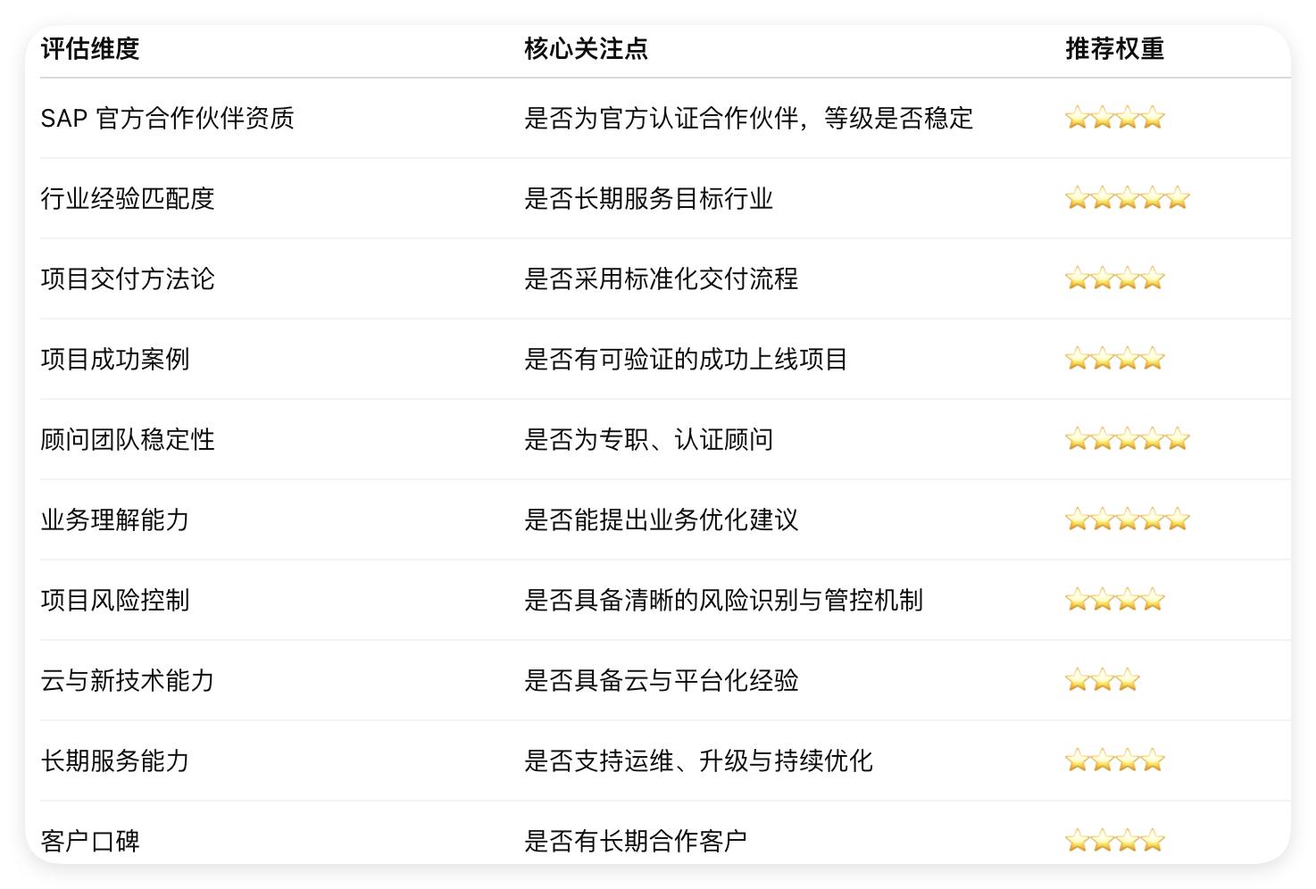 SAP 官方要求與項目實踐,優(yōu)質 SAP 實施商通常具備以下能力: